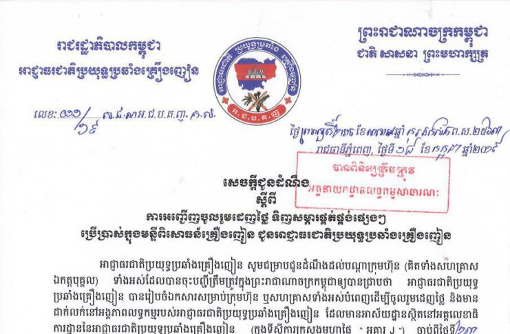 សេចក្តីជូនដំណឹង(លើកទី២) ស្តីពីការអញ្ជើញចូលរួមដេញថ្លៃការបោះពុម្ភសម្ភារៈ រដ្ឋបាល និងផ្សព្វផ្សាយជូនអគ្គលេខាធិការដ្ឋានអាជ្ញាធរជាតិប្រយុទ្ធប្រឆាំងគ្រឿងញៀនសម្រាប់ប្រើប្រាស់ឆ្នាំ២០១៩